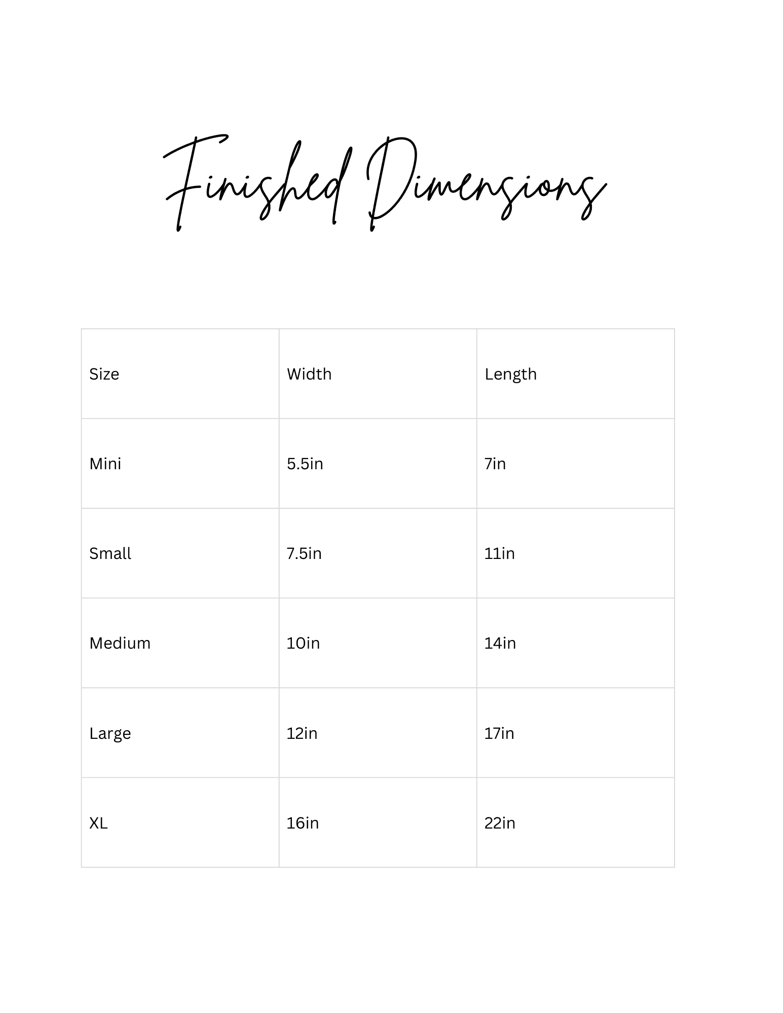 • Individual pattern files for each size ( Mini, Small, Medium, Large, XL )